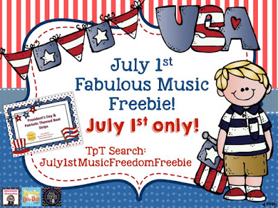 So, as you can see, tomorrow you'll have access to TONS of freebies to download! Head over to TpT and search July1stMusicFreedomFreebie or click here. My freebies is my Presidential and Patriotic Beat Strips!!! These are normally $5, but on July 1st they are FREE!!!
